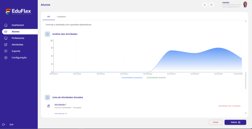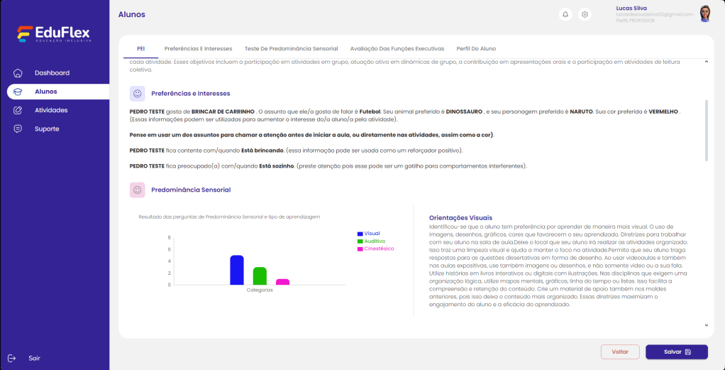 • Criar atividades adaptadas ao perfil individual de cada aluno.